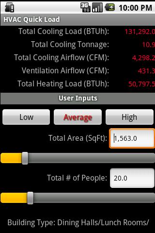 HVAC Quick Load apk | The HVAC Quick Load for Android is the one and only rule-of-thumb HVAC heating and cooling load application for Google Android mobile devices. This app performs rule-of-thumb HVAC cooling and heating load calculations for many types of commercial, industrial, institutional, and residential buildings. It allows you to quickly calculate the total required cooling and heating loads (in BTU/hr or Tonnage) and air flows (CFM or L/s) by inputting just the building type, total square area and number of people.