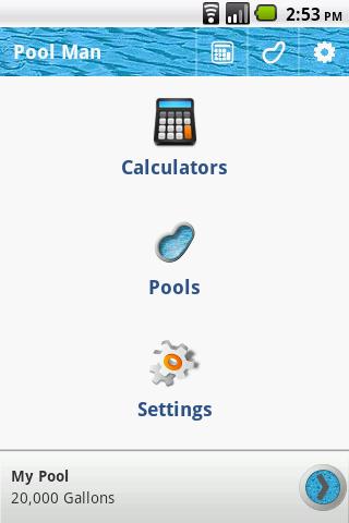 Pool Man apk | The Pool Man Swimming Pool Calculator. Calculate swimming pool sizes and chemical requirements with ease!* Saves settings for an unlimited number of pools. * Use U.S., Metric, or UK (Imperial) measurement units. * Calculates chemical requirements for Chlorine, Total Alkalinity, Cyanuric Acid (Stabilizer), and Calcium Hardness.