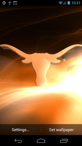 Texas Longhorns Pix & Tone apk | 8 officially licensed TEXAS LONGHORNS live wallpaper designs with your school’s logo and fight song! The fight song can be saved as a ringtone or tap the screen to play as an audio clip. All designs and fight songs are officially licensed. Support your team with official content. $1.99 to download.